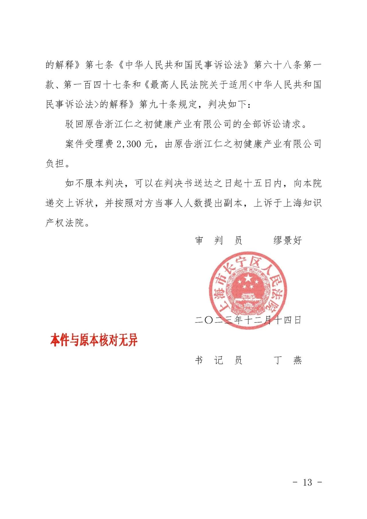 石嘴山辉知胜诉佳讯 | “仁之初健康”著作权及不正当竞争纠纷案,法院:驳回全部诉讼请求!